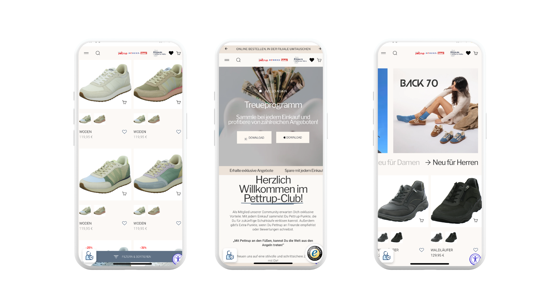 Ein zentrales Element der Marke ist der stationäre Handel. Mit 17 Filialen setzt Pettrup Schuhe bewusst auf persönliche Nähe, individuelle Beratung und ein hochwertiges Einkaufserlebnis vor Ort. Die Filialen stehen für Verlässlichkeit, Servicequalität und eine starke regionale Präsenz – Werte, die das Fundament der Marke bilden und Pettrup Schuhe klar positionieren.